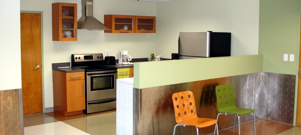 Redesign and buildout of a 200 bed, 60,000 sq ft health care facility. Project included entrance, lobby, hallways, and other areas including patient, shower, family, day, dining, and therapy rooms. Exterior work included custom stone waterfall signage, awning, stone/stucco, new roof, and landscaping.